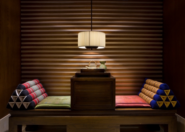 從材質(zhì)到色彩再到燈光,可以看到的搭配都很和諧,拋去了泰國那種花花綠綠的感覺,沉淀下來的氣質(zhì)寧靜而清幽。這其中提煉到一股精髓,即“佛”,但沒有非常夸張化,再用燈光的明暗對比來突出氣氛,不會令人覺得多了一分,或少了一分。這個系列的設(shè)計,辦公室設(shè)計公司可以參考一下,特別是燈光的把握。