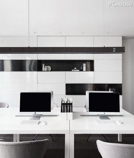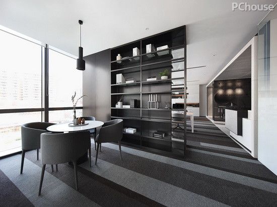 既然在設計本身的層面沒有硬性要求,設計師便在第一種情境中嘗試著玩一種黑白灰關系的像素視覺,而將小一點的空間想象成一個小型的文創(chuàng)行業(yè)的辦公地。